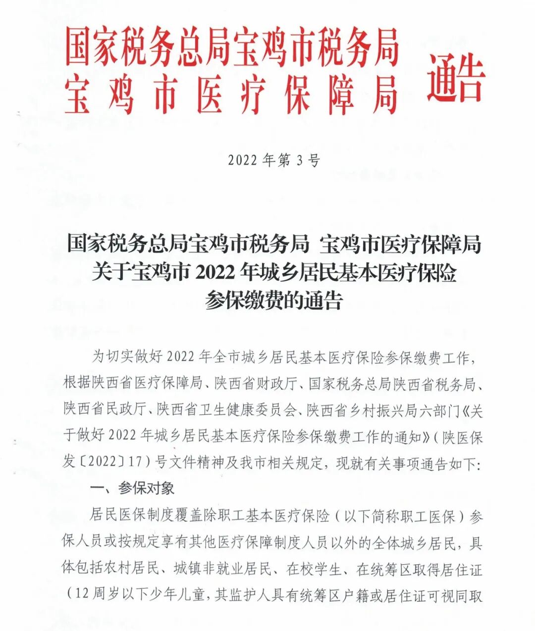 关于宝鸡市2022年城乡居民基本医疗保险参保缴费的通告 | 宝鸡信息-宝鸡城