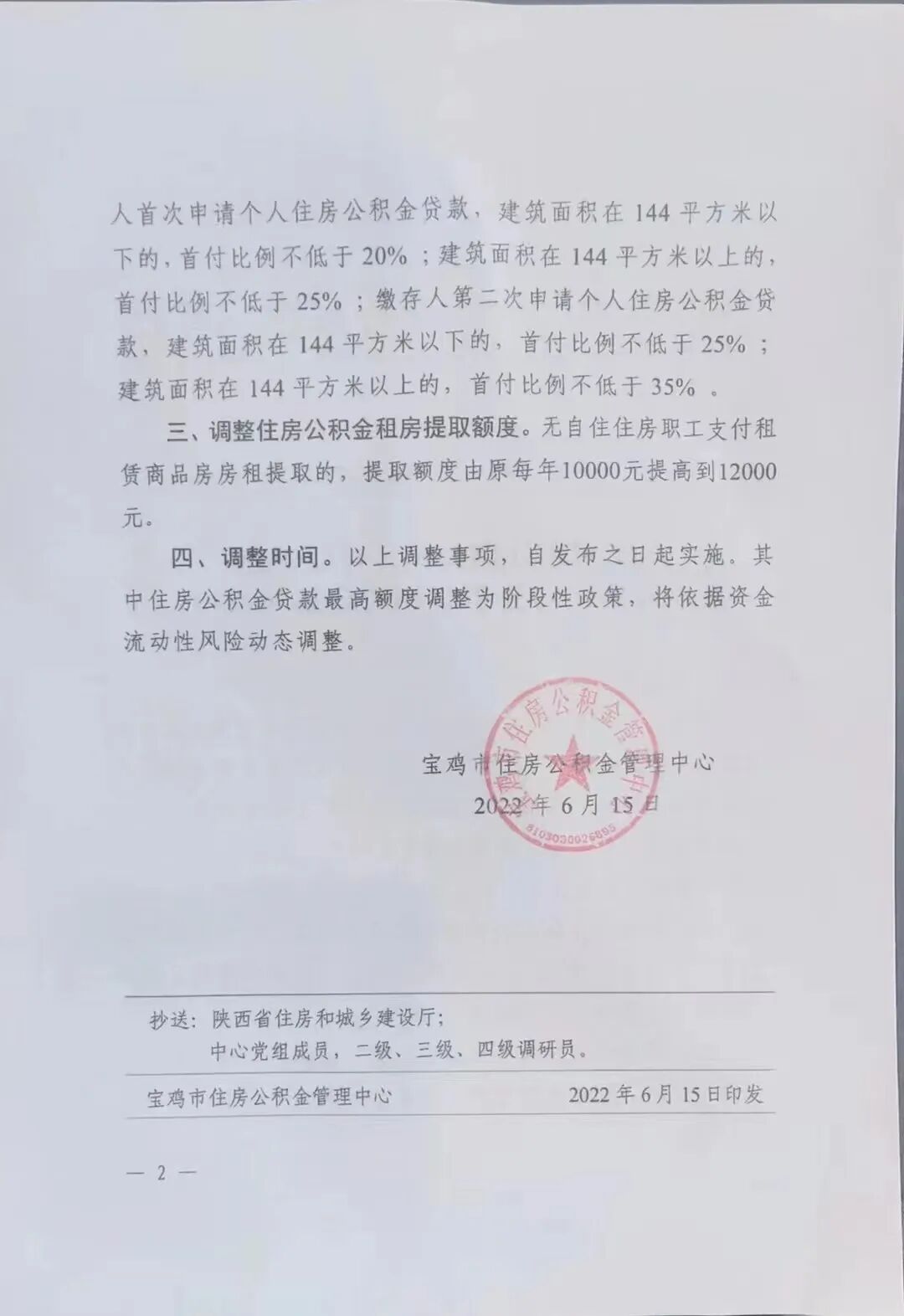 宝鸡市住房公积金管理中心关于调整住房公积金相关政策的通知