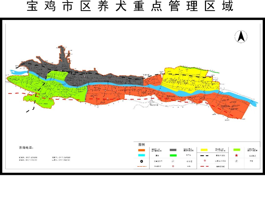 一、市区下列区域为养犬重点管理区:西至高家镇连霍高速宝鸡西收费站以东;东至省荣军第一医院以西,陆港大桥以西;北至群众路街道八里村(含)以南;南至高家镇、石鼓镇连霍高速以北,神农镇益门堡村以北,渭滨大道以北。